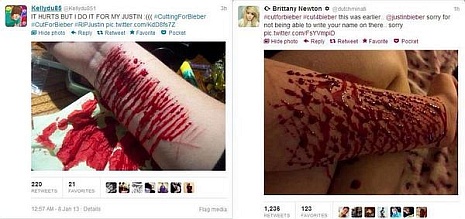 A #cutforbieber hashtag rövid idő alatt hatalmas népszerűségre tett szert a Twitteren, ennek keretein belül az elkeseredett rajongók felvágott ereikről készült fotókat töltenek fel a mikroblogra. Sokan rövid szöveget is mellékelnek a sokkoló képekhez, mint például: „Hagyj fel a drogokkal, és mi felhagyunk a vagdosással!”