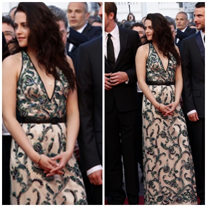 Talán nincs sok különbség az első és a második helyen álló összeállítás közt, de mégis teljesen más stílust kölcsönöz a fiatal színésznőnek. A ruha felsőrésze dicsérni való, mert tudták hol a határ, a hasat láttatni engedő kivágás ezúttal nem fest botrányosan. Kristen egy Nicolas Ghesquière-tervezte dresszt viselt, amelyekhez Christian Louboutin-cipőt választott.
