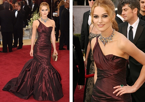 Keira ruhája igencsak népszerű téma volt a hét évvel ezelőtti Golden Globe-díj-átadón. Szintén a Büszkeség és balítéletben nyújtott alakításáért jelölték, s Valentino-ruhájában minden szemet meggyönyörködtetett. Egyszerű és gáláns ruhakölteményéhez Cartier-ékszereket választott.