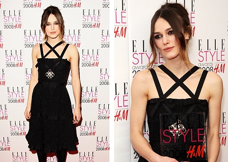 Keira a Legjobb színésznőnek járó elismerésével pózolt a 2008-as Elle Style Awardson, melyet a The Westwayben tartottak február 12-én, Londonban. A Chanel 2008-as őszi kollekciójából választott darabot, haját pedig egyszerű kontyba fogta.