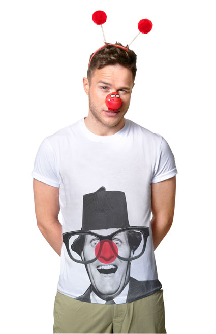 A tehetséges angol énekes nemcsak az orrán viselte a vicces figurát, hanem pólóján és fejdíszén is visszaköszön ránk a kör alakú forma – bár Olly szívtipró tekintete valószínűleg mindenkinek a figyelmét elvonja ezekről.