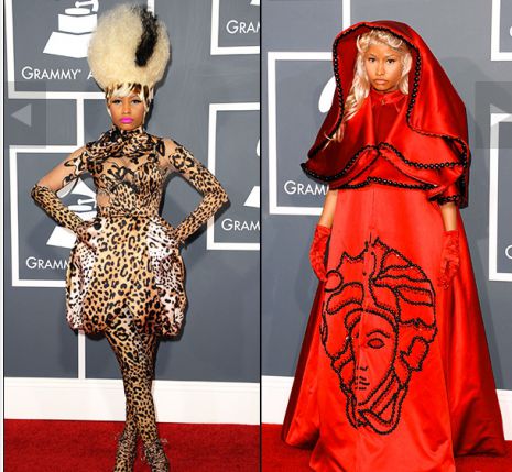 Az énekesnő – kijelenthetjük – szokást űz abból, hogy mindenkit sokkol a Grammyn. Először egy tetőtől talpig leopárdmintás rucit választott a 2011-es rendezvényre, majd egy évvel később egy vörös Versacében tett nagyon hatásos belépőt – bár sokkal inkább hasonlított Piroska merészebb énjére.