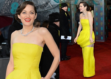 A francia színésznő egy Dior Haute Couture-estélyit választott, de hogy nézett-e tükörbe, mielőtt elindult volna otthonról, nem tudjuk. A két réteg nem takarta egymást tökéletesen, így a hálós rész folyton kikandikált. A Jimmy Choo-cipőket teljesen eltakarja a ruha, de a Chopard-nyaklánc gyönyörű.