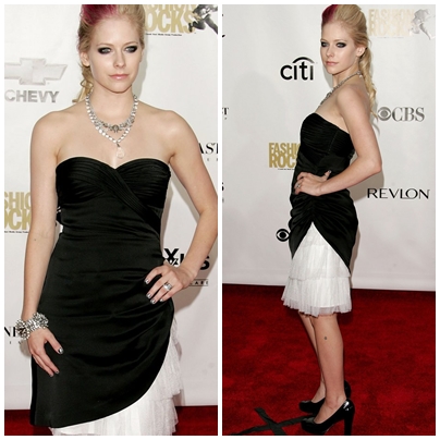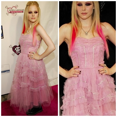 2007-ben elég nagy szenzációnak bizonyult Avril új, pinkes énje. Azonban az akkori lemezének, a The Best Damn Thingnek a partiján kissé túlzásba vitte a cukormázt, a ruha alsórésze úgy nézett ki, mint valami csipkés abroncs. Inkább egy Halloween-estre kellett volna felvennie, mintsem egy népszerűsítő partira.