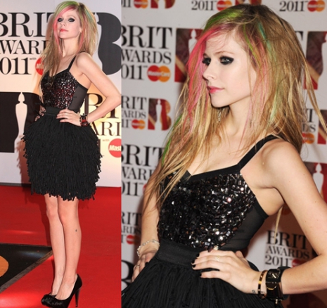 A 2011-es BRIT Awardson az énekesnő igazán önmagát adta. Megmaradt rockos énjénél, mégis elegánsan festett a Julien Macdonald-ruhájában. Az összhatást még vagányabbá tették a pink-zöld melírok, azonban a Gina márkájú magas sarkú cipője és a Glynneth B-ékszerei segítségével megtalálta az arany középutat. Egyébként Lavigne egy díjat is átadott akkor, a szintén kanadai, mostanában zűrös életű Justin Biebernek is.