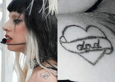 Gaga sosem volt igazán visszafogott természetű, így a tetoválásai sem éppen azok. Azonban a legkedvesebb minden valószínűség szerint ez a szalaggal díszített szivecske, melyen a dad, vagyis az apa felirat olvasható. Gaga röviddel azután varratta a bőrére az ábrát, miután édesapján sikeres szívműtétet hajtottak végre. Édesapja évek óta szívproblémákkal küzdött, és az énekesnő rettegett attól, hogy elveszítheti őt. Mikor elmondta édesapjának a tetoválással kapcsolatos terveit, a férfi könnyes szemmel kérte az énekesnőt, hogy ne legyen túl nagy. Ekkor írta Speechless című dalát, mintegy védőbeszédet, hogy sikerüljön a műtét.