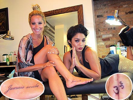Ashley testét mindössze három tetoválás ékesíti, így nem tartozik azok táborába, akik átestek volna a ló túloldalára a tintát illetően. Legjelentősebb tetoválása minden bizonnyal a jobb bokáján olvasható jamais seule felirat, mely magyarul annyit tesz: sosem vagy egyedül. Az énekes-színésznő 2011 szeptemberében szánta rá magát a tetováltatásra, mely jeles alkalomból legjobb barátnője, Vanessa Hudgens is elkísérte Bang Banghez, aki olyan neves sztárok bőrén is nyomot hagyott, mint Rihanna vagy Katy Perry. További érdekesség, hogy Vanessa sem tért haza anélkül, hogy tetováltatott volna, így ő egy om szimbólummal lett gazdagabb.