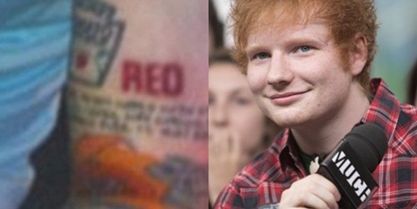 Ed bal karján szinte egy képeskönyv található, a pingvinektől kezdve a zöld faleveleken keresztül mindenféle motívum megtalálható rajta. Ám egyik szerzeménye különösen felkeltette a média figyelmét, mégpedig a felkarján található pirossal felvázolt RED szócska. Nem, ez nem véletlen, bizony a brit énekest Taylor Swift RED című albuma inspirálta. Tudniillik, az albumon megtalálható közös daluk hatalmas sikereket ért el, Ed karrierje azóta pedig nagy lépést tett előre, így valószínűleg ez ihlette a tetoválás megalkotására.