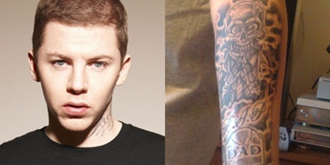 Eddigi felsorolásunkból mindenképpen a Professor Green emelkedik ki, hiszen őt saját gyermekkora ihlette meg. Egyéves korában szülei elváltak, édesanyja felszívódott, édesapjával pedig csak nagyon ritkán lépett kapcsolatba, így egészen kisgyermekkorától kezdve nagymamája nevelte. Apjával való viszonya rémes volt, azok után, hogy ki-be sétált az életéből. Végül a férfi 2008-ban felakasztotta magát. A brit rapper ezek után csináltatta meg bal karjára a tetoválását, mely édesapja sírkövét ábrázolja, felette pedig egy gonosz alak jelenik meg. Jelentése annyit tesz, apja még holtan is ugyanúgy keservessé teszi az életét, ahogy azelőtt.