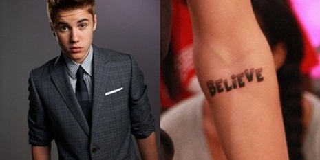 Az énekes 2012. június 20-án David Letterman műsorába volt hivatalos, ahol megmutatta az akkori ötödik tetoválását. A bal karja belső részén olvasható Believe felirat akár albuma promója is lehetne, ám Justin számára sokkal nagyobb jelentéssel bír. Egy interjú keretei között elmesélte, a szó mindig emlékezteti arra, nem számít, mi kerül az útjába, ha hisz annak leküzdésében, mindig sikerrel jár.