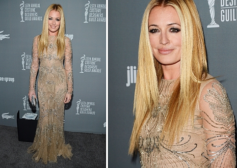 Egy, az alakját tökéletesen kiemelő Monique Lhuillier-estélyiben kápráztatott el mindenkit a Costume Designers Guild Awardson, s ugyan férje, Patrick Kielty nélkül jelent meg, hamar társaságra lelt Steve Martin személyében – nem is csodáljuk, hiszen az aranyszegélyekkel futtatott ruha ragyogóan állt rajta.