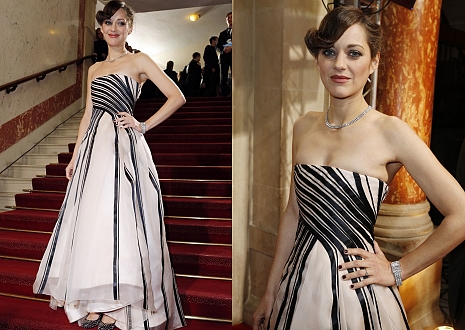 A francia színésznő a 2013-as Cesar Film Awardson vett részt, melyet a Theatre du Chatelet-ben tartottak február 22-én, Párizsban. A 37 éves színésznőt kollégája, Matthias Schoenaerts is elkísérte. Az eseményre Christian Diortól választott ruhát, mely a deréktájon sűrű csíkozásának köszönhetően kiemeli alakját, s a ritkított lefelé futó csíkok miatt terebélyesebbnek hat, mint valójában az. Merész, de ízléses választás.