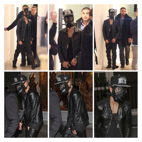 Justin a minap Londonban vásárolgatott pár barátjával és testőrével, amikor a lesifotósok lencsevégre kapták. Bieber tiszta feketében vonult végig az áruházban egy gázmaszkkal az arcán és egy Brooklyn Nets-es baseball sapkával a fején.