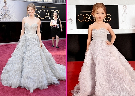Jennifer Lawrence, bemutatjuk önmagad kicsiben! A New York-i művész, Tricia Messeroux ismét előállt népszerű terveivel, hogy az Oscar-gálán megjelent sztárokat és azok ruháit újrakreálja, kisgyerekek segítségével.