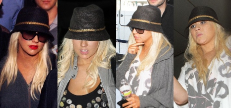 Christina Aguilera bizony nem ismer határokat, ha kalapokról és sapkákról van szó: ezúttal ezzel a fekete színű fejfedővel érdemelte ki a helyet. Az énekesnő előszeretettel bújik eme darab rejtekébe a szemtelen paparzzók elől, bár néha még ez sem védi meg őt és előfordul, hogy dühbe gurul.