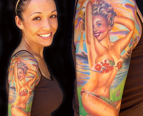 Travis Barkernek (Blink 182) van ilyen tetkója, de nők körében sem ritka, hogy valaki magára varrat egy ún. pin-up girlt, legtöbbször kamionnal vagy egy vagány autóval együtt. Karon, háron találhatóak meg leginkább.