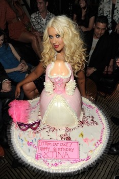 Az aranytorkú énekesnő egy nagyon ötletes tortával ünnepelte 31. életévét, egy rózsaszín elegáns ruhába öltözött test a torta része, a feje pedig már Christináé. A gyönyörű sütemény mellett helyet kapott még egy pink karneváli álarc is.
