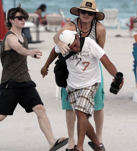 Biebs március 8-án támadt egy lesifotósra, miközben elhagyta a londoni szállodáját. A fiatal énekes egyre nehezebben bírja a celebkedéssel járó nyomást, így amikor az egyik riporter megjegyezte, hogy „takarodjon vissza Amerikába, és húzza fel a nadrágját”, Bieber úgy gondolta, hogy a legjobb megoldás az lesz, ha a torkának ugrik. Pechére vele volt a nagy darab biztonsági őre, aki könnyedén fogta vissza a mérges kanadai sztárt.