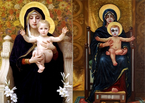 A francia festő műve 1899-ven készült el, a Szűz Mária az ártatlan Jézust tartja a kezében, s mindkettejük feje fölött glóriát láthatunk. Az angol verzióban azonban a jól ismert KISS-arcrajzot ismerhetjük fel, Máriát Gene Simmonsszá, míg a kis Jézust Paul Stanley-vé változtatva.