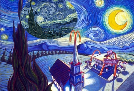Ron English változatában ugyanezt láthatjuk, azonban a helyszín a modern Amerikává változott: mindenütt óriási reklámplakátokat és hamburgerezők, gyorséttermek tengerét látja az utcákon saját szemével. A kép a McStarry címet kapta.