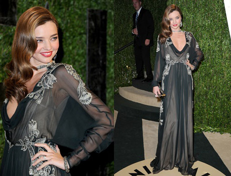 A 2013-as Oscar-partin viselt estélyi az egyik legmegosztóbb Miranda megjelenései közül. Egyesek szerint elbűvölő, míg mások szerint hatalmas bukás. A legtöbb kritikus és mi is a második véleményt osztjuk. Természetesen nem Miranda hibája, hiszen ő még ezt a Valentino-borzalmat is tudja viselni. Orlandóval egyébként remekül mutattak a vörös szőnyegen, így nagy kár ezért a mellényúlásért!