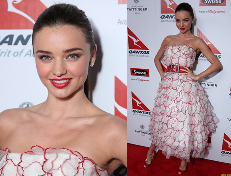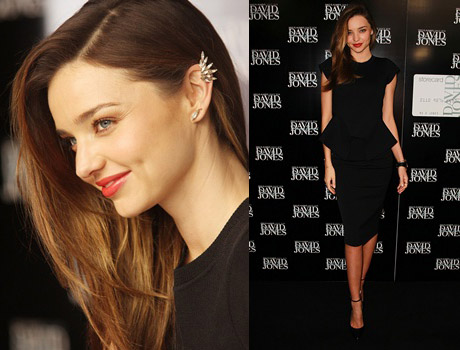 „A kevesebb néha több!” – valószínűleg ez volt Miranda mottója, mikor ebben a szettben jelent meg a David Jones Fashion Workshop februári eseményén. A szoknya és a különleges peplummal ellátott felső a Scanlan & Theodore kollekciójából való, a cipők a Valentinótól, az óra pedig a Bulgaritól származik. Mégis a legfeltűnőbb dolog a megjelenésében egy bizonyos ear cuff/fül mandzsetta volt, amit Ryan Storer tervezett.