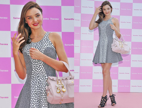 2012. szeptember 9-én rendezték meg Tokióban Samantha Thavasa legújabb táskakollekciójának promótálását. A rendezvényre Miranda is egy ilyen táskát választott, kiegészítői visszafogottak voltak, így ismét ruháján volt a hangsúly, aminek megálmodója Josh Goot, míg bőrcipellőjének tervezője Alaia Azzedine.