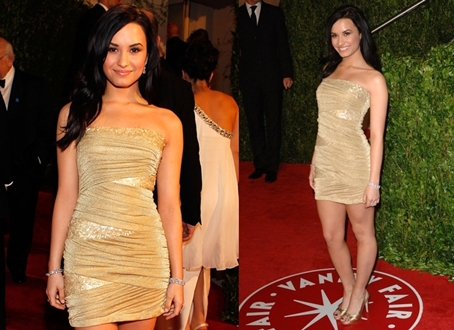 Demi nem tartozik a nádszálvékony lányok körébe, de nagyon szép, nőies alakja van. Viszont sajnos ez a 2011 szeptemberében viselt párducmintás kreáció előnytelenül mutatja be és emeli ki az énekesnő formás idomait.