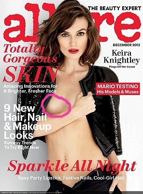 Keira sosem volt a szégyenlősségéről ismert, több filmjében (már a karrierje kezdetén is) megmutatott mindent magából. A 2012-es Allure-címlap egy vad, érzéki és kihívó színésznőt mutat be, de muszáj megkérdeznünk: mellbimbóműtéten esett át? Hacsak nem valahol az oldalán helyezkedik el, akkor bizony leműtötték a képszerkesztők.