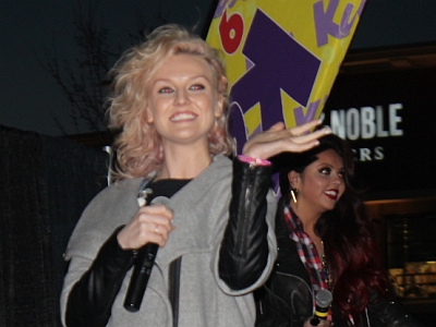 Március 28-án már új hajszínével mutatkozott Perrie, aki alig néhány hete festtette be haját a rózsaszín-ciklámen-lila kombinációjára, ombre stílusban.