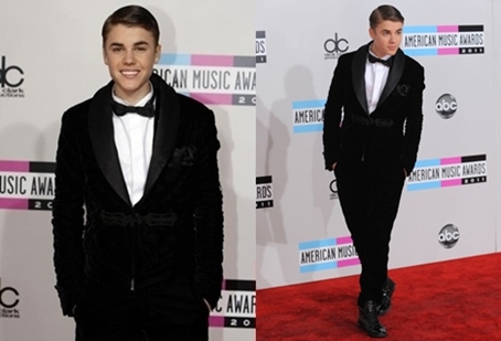 Miután 2011 elején összejött Selena Gomezzel úgy gondolta ideje, hogy az American Music Awardson egy felnőttesebb oldalát mutassa meg kedvese mellett. A fekete öltöny már önmagában is túl komolyan festett Bieberen, de még hozzá a lenyalt haj egyszerűen borzalmas. Biztos Selena oldalán férfiasan szeretett volna mutatkozni, de ennek a fogalomnak még a közelében sem járt.