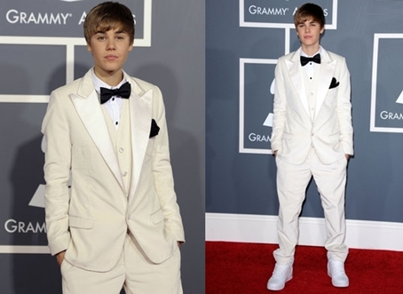 Justin fehérbe borult a 2011-es Grammy Awards-on. Dolce & Gabbana szmokingja majdnem segített is a kanadai énekesnek, hogy a jól öltözöttek listáján szerepeljen, de sajnos annyi bizony hibádzott a szettben, hogy az öltöny és a nadrágja is legalább egy – ha nem kettő – mérettel nagyobb volt nála. Nem baj, Bieber. Majd legközelebb.
