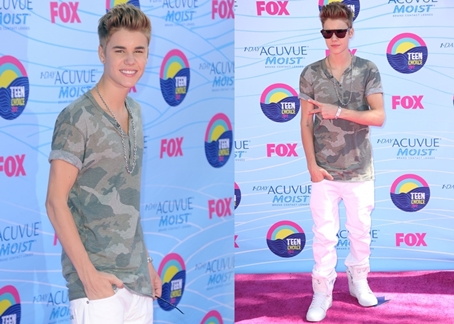 Bieber megtestesítette a laza kaliforniai srácot a 2012-es Teen Choice Awards-on. A nyári díjátadón egy egyszerű terepmintás Dolce & Gabbana pólóban és egy hófehér Marc by Marc Jacobs farmerban tette tiszteletét. Szettjét szintén fehér Supra cipővel, illetve Ray Ban napszemüveggel dobta fel.