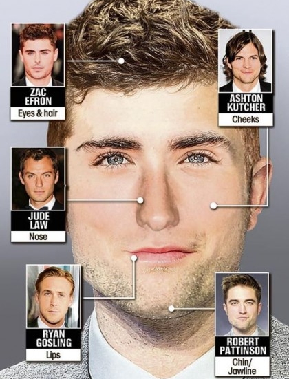 Míg a szemeit és haját a High School Musical-filmek sztárja, Zac Efron szolgáltatta, addig Jude Law orrával és Ryan Gosling ajkaival büszkélkedhet a kreálmány. Arccsontozatáért Demi Moore exe, Ashton Kutcher a felelős; álláért és borostájáért pedig Robert Pattinsonnak adhat köszönetet a fiktív figura.
