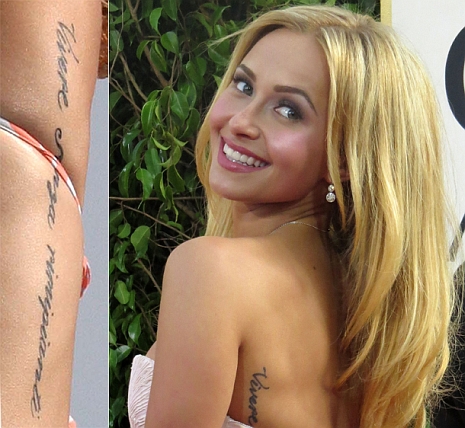 Nem biztos, hogy a színésznő, lehet, hogy a tetoválóművész hibája, hogy ekkora bakit vétett. Az olasz Vivere sense rimipianti teljesen mást jelent, mint eredetileg tervezve volt. Lehet, hogy Google-fordítóval ügyetlenkedtek a szalonban? Élj megbánások nélkül – ezt jelentené a szöveg, ha helyesen lenne Hayden bőrére varrva, egy i-vel azonban kipótolták. A helyes idézet úgy fest, Vivere sense rimpianti.
