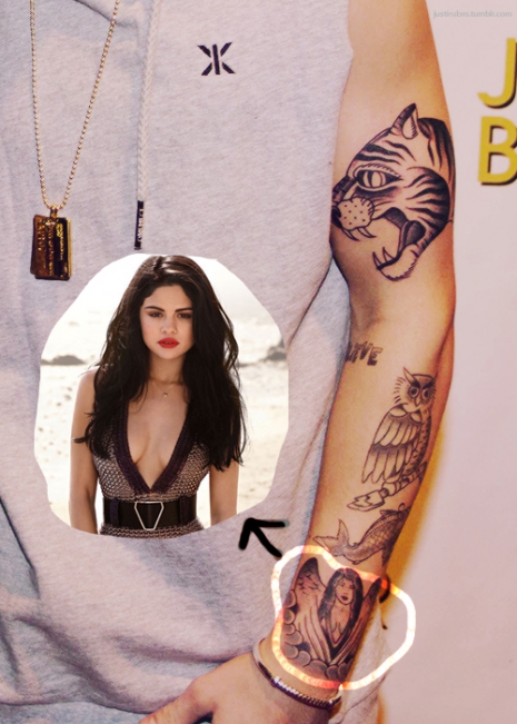 Justin Bieber Selenás tetkója a Stockholmi találkozón és az eredeti kép