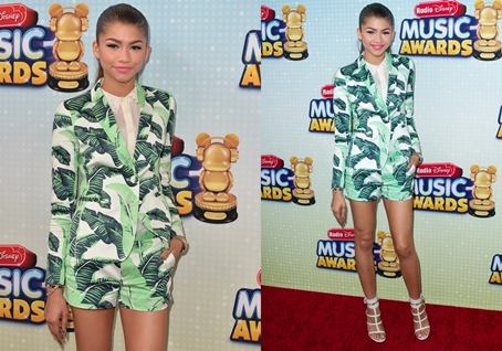 A Shake it Up sztárja elhozta nekünk a nyarat a díjátadóra egy Juicy Couture-blézerrel és -rövidnadrággal, ami a zöld különböző árnyalataival játszik. Egyszerű fehér Gucci-cipője pedig tökéletesen illik a szettjéhez. Nem a megszokott vörös szőnyeges viselet, de nagyon illik Zendaya vidám természetéhez.