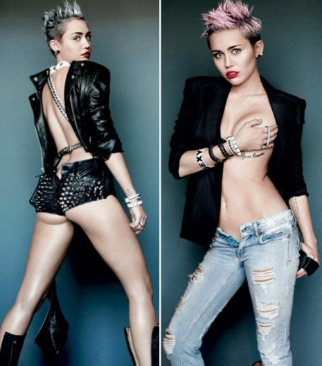 Rózsaszínre és kékre pingált hajjal, melltartó nélkül villant feneket Miley Cyrus.