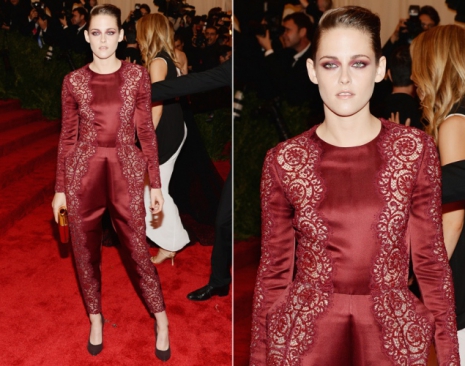 Kristen Stewart stylistja nem választott valami előnyösen ezzel a Stella McCartney vörös overállal, a sminkesek pedig egy sétáló zombit varázsoltak az egyébként helyes színésznőből. Nagy kár!