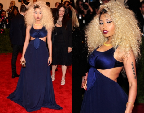 Nicki Minaj önmagához képest egészen normálisan nézett ki ebben a kék selyemruhában, amelyhez tökéletesen illett szőke, göndör haja és sötét rúzsa. Nicki, most ezt eltaláltad – még akkor is, ha az összhatás nem volt annyira punk...