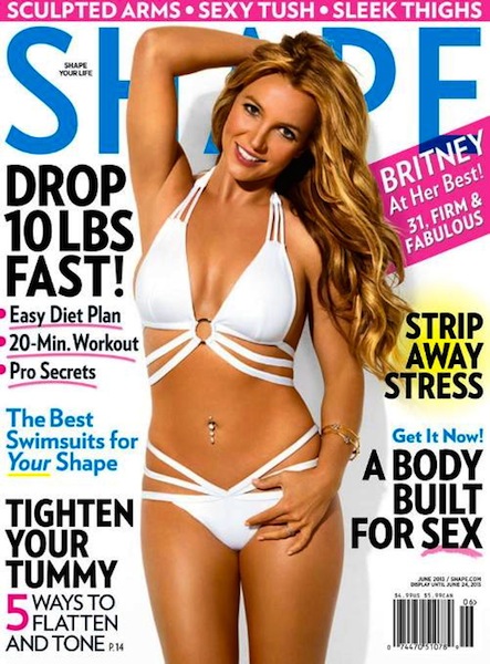 Április végén még narancsbőrös lábaival hívta fel magára a figyelmet, most azonban irigylésre méltó alakkal, vékony és hibátlan combokkal szerepel a Shape magazin júniusi számának címlapján Britney Spears, mindössze egy szál hófehér bikiniben. Az új lap még nem érkezett meg az újságárusokhoz, de a Shape hivatalos Twitter-oldalán már közzé lett téve az igazán nagyszerű borító.