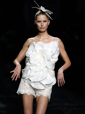 6. Az (elméletileg) uszály hamarabb fest kreppapírnak, a falatnyi szoknya és top pedig amellett, hogy sokat sejtető, kielégít minden igényt, ha a menyasszony úgy dönt, az esküvő után éjszakai klubba vagy diszkóba szeretne menni.