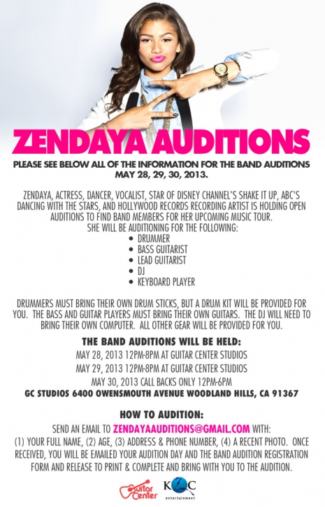 A Shake It Up sztárja egyébként május 28. és 30. között tart nyílt meghallgatásokat a Guitar Center Studiosban, hogy összeszedje bandáját a fent is említett nyári turnéra. A jelentkezés nincs korhatárhoz kötve és a következő posztokra keresnek jelentkezőket: dobos, gitáros, basszusgitáros, DJ és billentyűs.