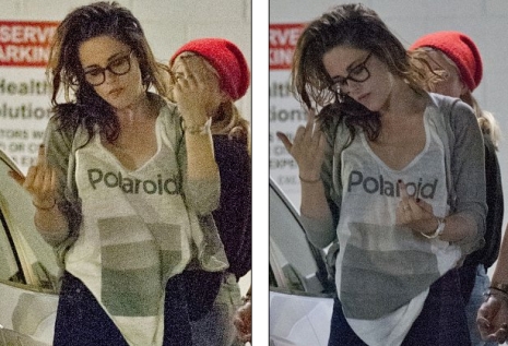 Perceken keresztül hadonászott két középső ujjával a lesifotósoknak, akik a parkolóban várták a 23 éves színésznőt.