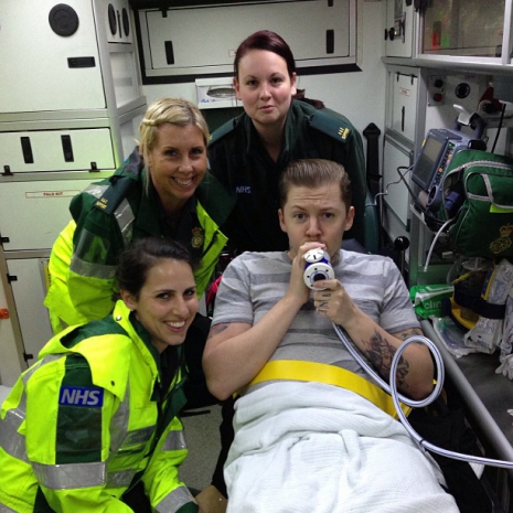 A szemtanúk szerint a kocsi átment az egyik lábán, ami eltörött, így a tegnapi estét a kórházban töltötte menyasszonyával együtt. Állapota már egyre jobb, viszont ma fogják megműteni a törött végtagját, amiről már számos tweetet hagyott Twitter-profilján.