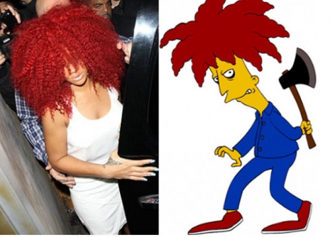 A barbadosi szépség sem a visszafogott stílusáról híres. Évekkel ezelőtt őt is a Simpson család egyik szereplőjéhez, Balfék Bobhoz hasonlították. Akár ikrek is lehetnének, bár Ririt nehéz elképzelni baltával a kezében.