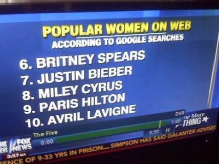 A Fox News megdöbbentő hírekről számolt be: kutatást végeztek a Google három évvel ezelőtti statisztikáival, azokat összehasonlították a COED magazin adataival, majd nemcsak arra sikerült rájönniük, kik a legnépszerűbb női celebek az interneten, hanem arra is, hogy Justin Bieber egy közülük!
