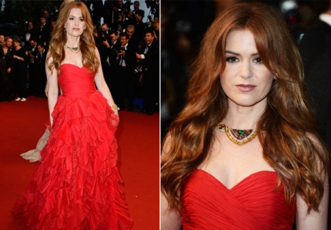 A Behind the Candelabra cannes-i premierjére egy szokatlan és feltűnő estélyit választott, amely ismét csak Roberto Cavalli munkáját dicséri. A nyaklánc talán még kitűnőbb, mint a ruha, de hová lenne Cannes szokatlan kiegészítők nélkül?
