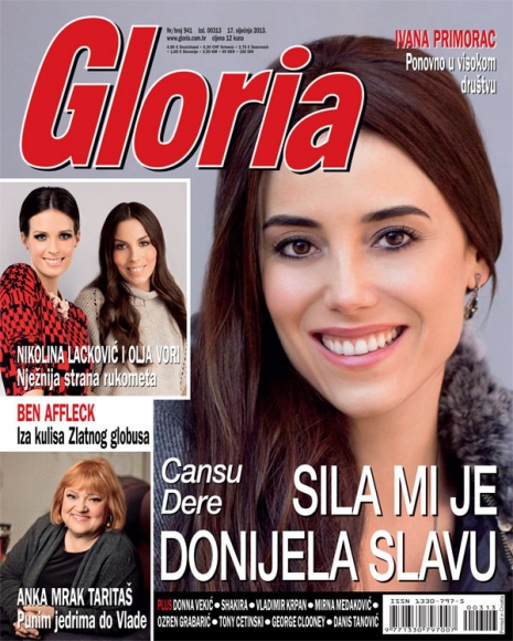 A horvát magazin címlapján is remekül fest, semmi kivetni valót nem lehet találni. Gyönyörű arca, amit nem sminkeltek agyon, a haja, ami természetes és ragyogó, mind passzolnak a ruhával, a háttér színével és a kiegészítőkkel. Nem csak ő szerepel a címlapon, de egyértelműen ő van a középpontban.