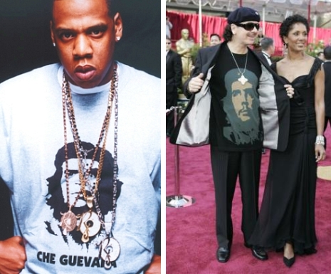 A gitárvirtuóz Carlos Santana egy Che-trikót viselt a 2005-ös Oscar-gálán, Madonna a Guerrillero Heroico képét használta fel a 2003-as, American Life albumának borítójához – David Bowie a Lodger című albuma belső borítóján a Che holttestét ábrázoló kép látható. Jay-Z szintén viselt már Che-trikót és a Public Service Announcement című dalában azt énekli, hogy „olyan vagyok, mint Che Guevara – aranyékszerekkel”.